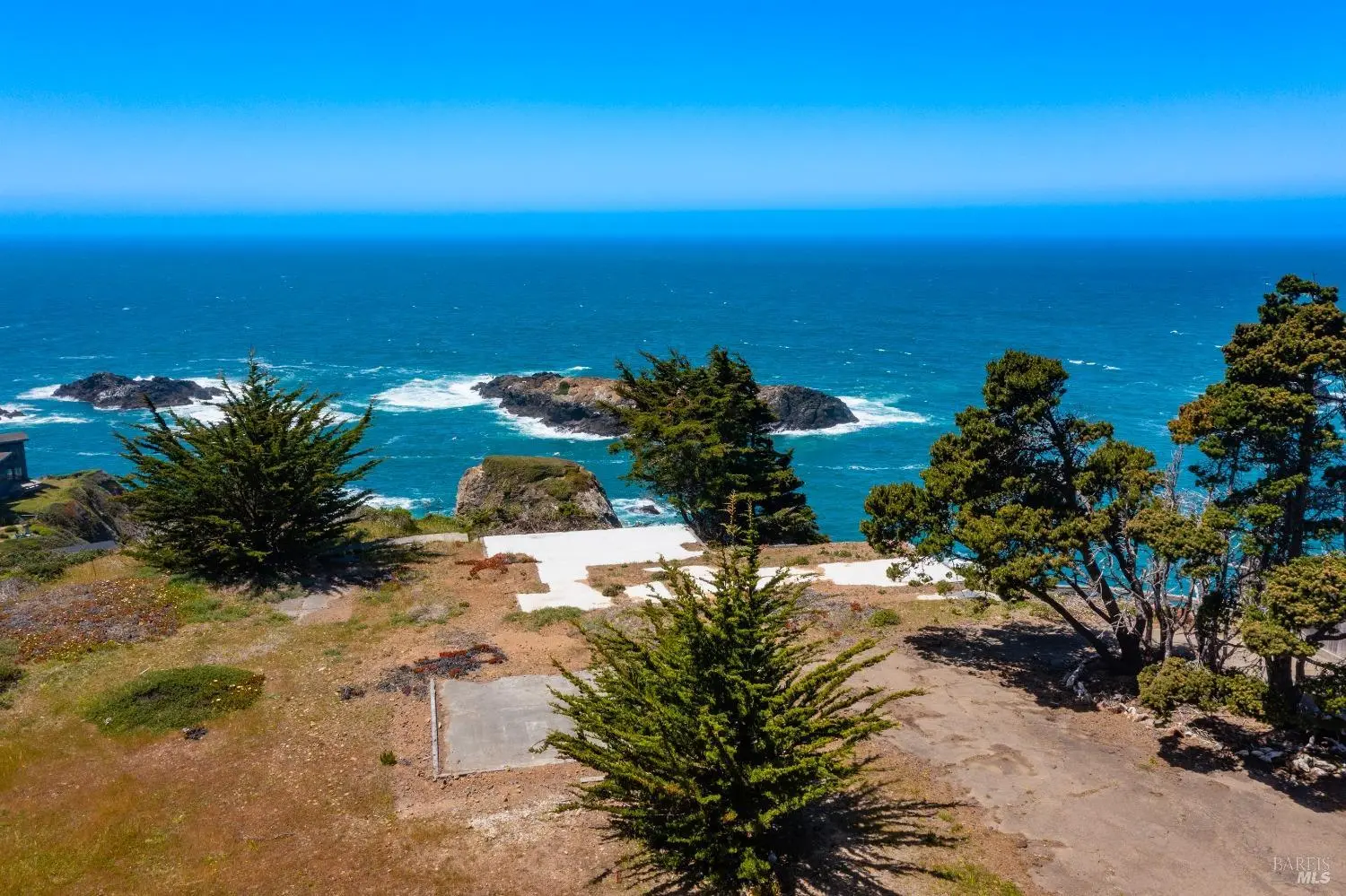 Oceanfront lot on the cliffs of Little River, with beautiful views of the Northern California coastline, sea caves , sea life, white water and sunsets. Foundation, original footprint in place to build. Geological study was performed in 2006. Private road and lush surroundings.. Less than 10 minutes for the village of Mendocino and the Little River Airport.