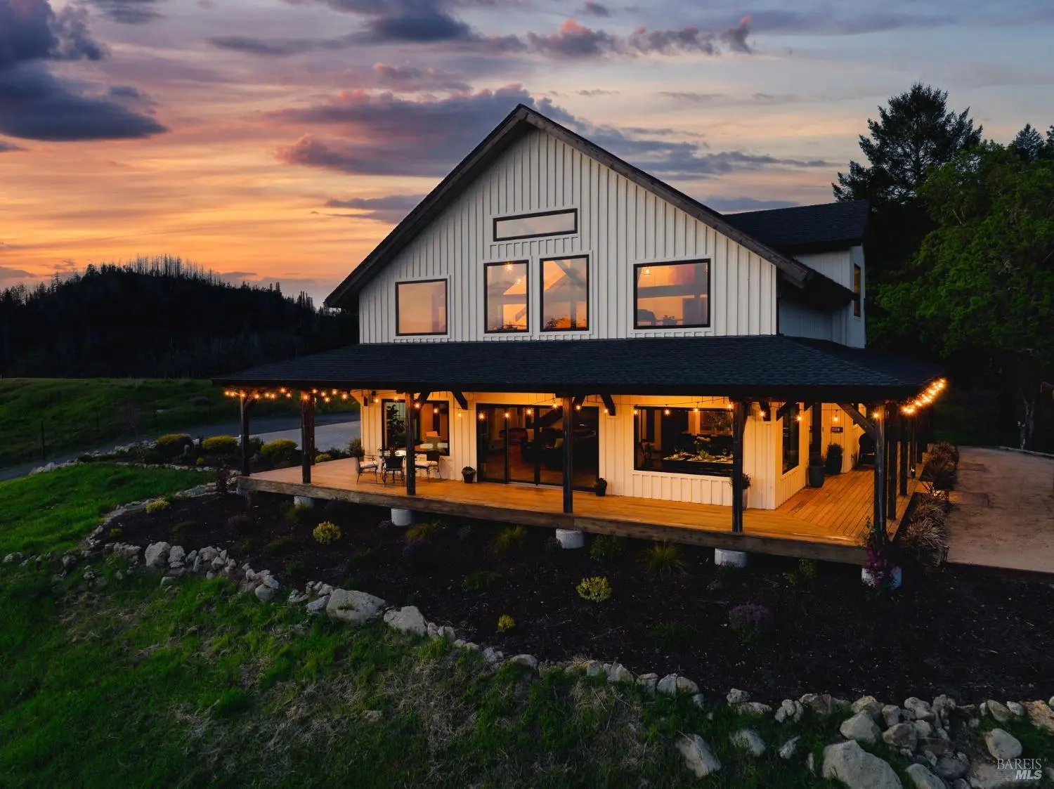 Wake up to rolling vineyard views and the quiet beauty of wine country on this breathtaking 23-acre estate. Thoughtfully sited to maximize privacy and panoramic scenery, the 3,121 sq. ft. residence features a light-filled open floor plan, chefs kitchen, locally made knotty alder cabinetry, and doors, craft lighting and a wraparound porch made for golden hour moments. Every window frames a landscape worth pausing for the morning mist drifting through the vines, the soft glow of sunset on the distant horizon.At the heart of the property are 3 acres of premium Cabernet Sauvignon grapes, nestled within the Knights Valley AVA. Whether you're looking to produce your own vintage, expand the vines, or simply enjoy the seasonal rhythm of wine country, this land invites a slower, more intentional way of living. The barn style detached garage with a finished attic offers generous space for storage, hobbies, or creative projects, while the property's layout allows for the future build of a second home or guest house perfect for multi-generational living, rental income, or creating a legacy estate. Private, peaceful, and full of possibility, this is more than a home it's a lifestyle rooted in nature, beauty, and potential within minutes of downtown Calistoga or Santa Rosa.