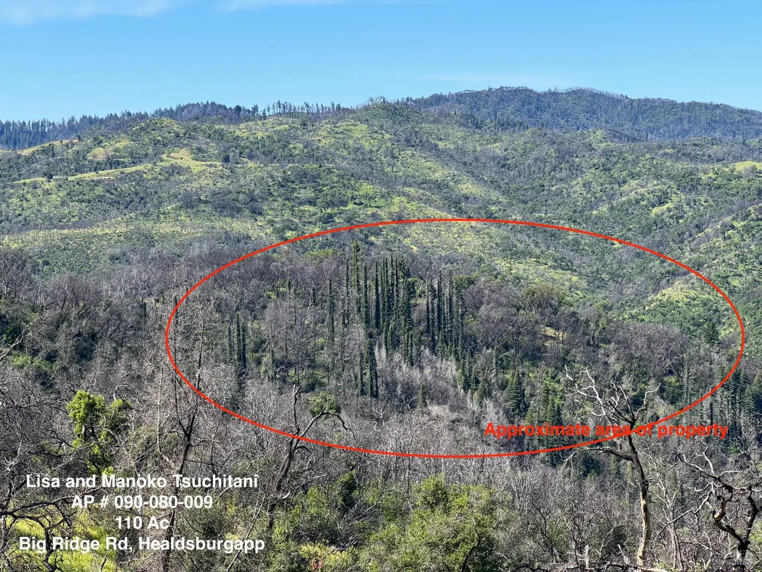 Remote and rugged property about 25 minutes west of Healdsburg. Very raw property without developed water, perc or roads. Beginning to recover from the Walbridge Fires of September 2020. Some redwoods Ideal for hunting or primitive camping and hiking.